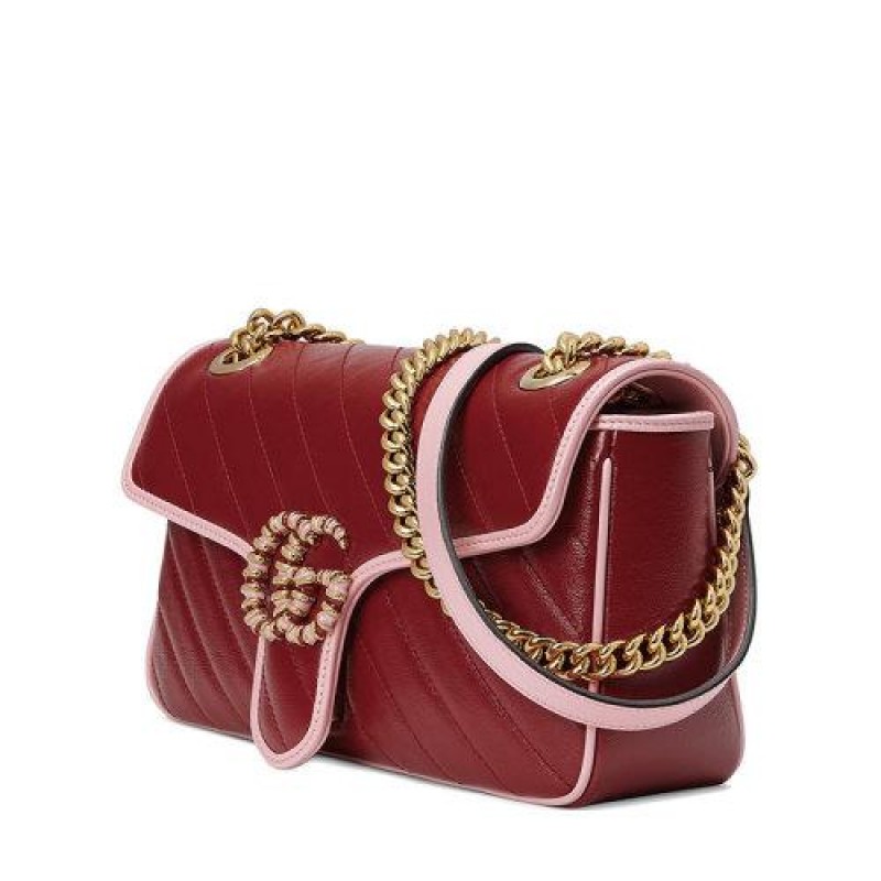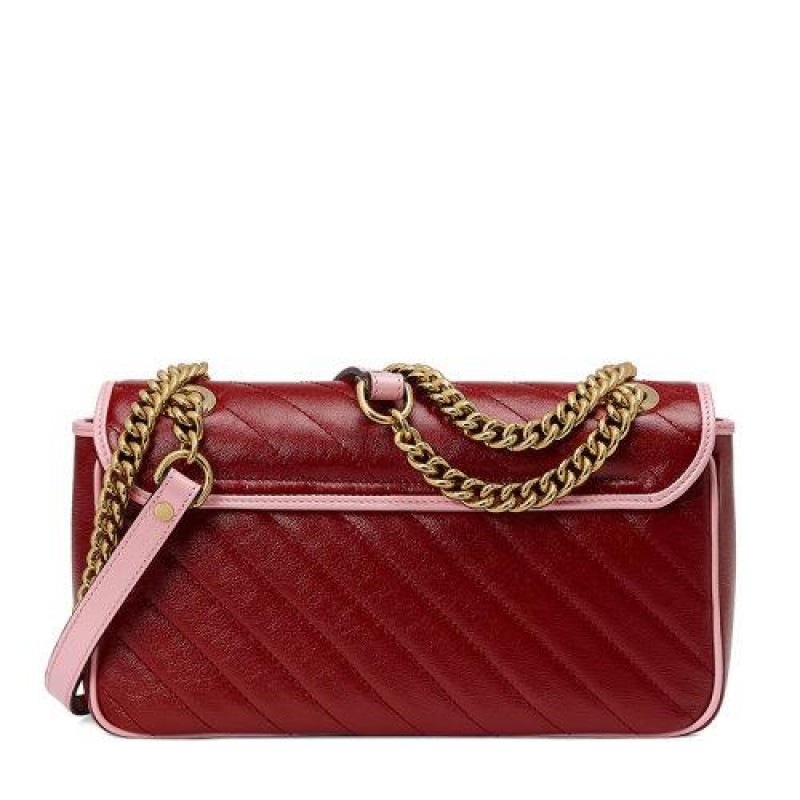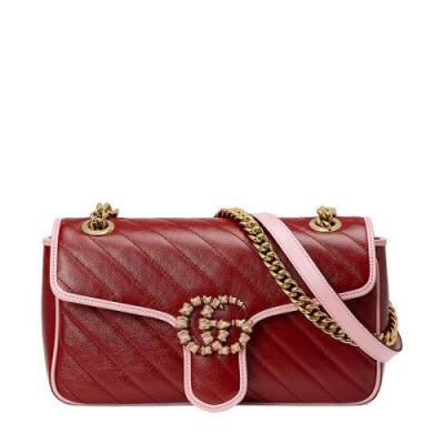 【包税】GUCCI/古驰 2021春夏新款 GG Marmont系列 女士小号红色和粉色皮革翻盖珐琅双G单肩斜挎手提包4434971X5EG6476