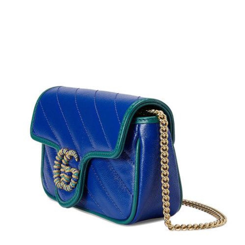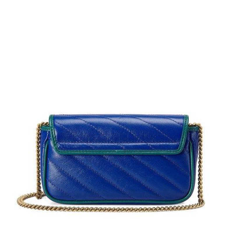 【包税】GUCCI/古驰 2021春夏新款 GG Marmont系列 女士超迷你蓝色和绿松石皮革翻盖珐琅双G单肩斜挎手提包5749691X5EG8382
