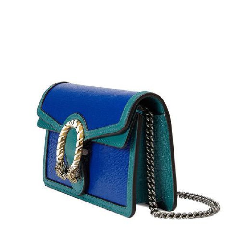 【包税】GUCCI/古驰 2021春夏新款 Dionysus系列 女士超迷你蓝色和绿松石色皮革虎头扣单肩斜挎包47643218YQX9278 $1328.6 |