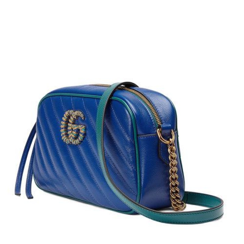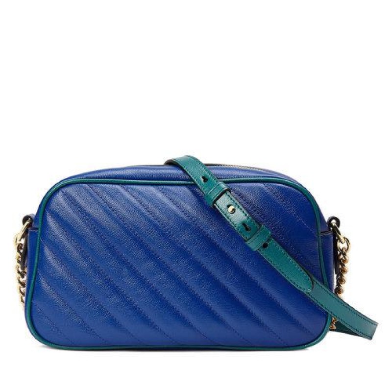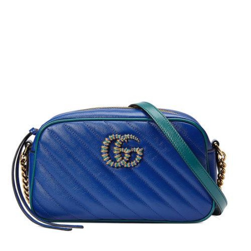 【包税】GUCCI/古驰 2021春夏新款 GG Marmont系列 女士小号蓝色和翠绿色皮革拉链珐琅双G单肩斜挎手提包4476321X5EG8382