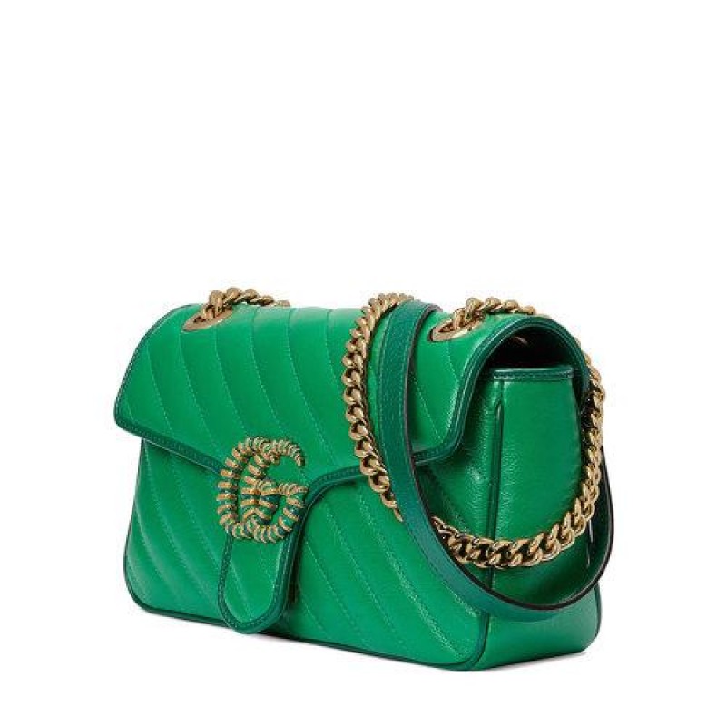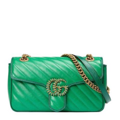 【包税】GUCCI/古驰 2021春夏新款 GG Marmont系列 女士小号绿色和翡翠色皮革翻盖珐琅双G单肩斜挎手提包4434971X5EG3862