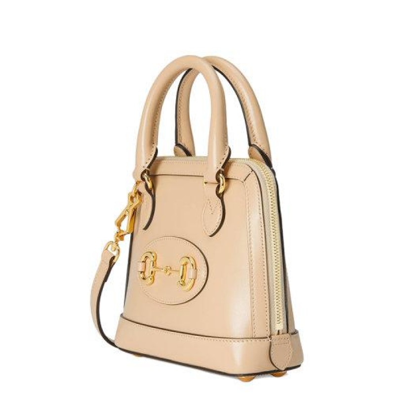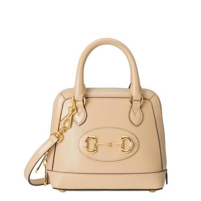 【包税】GUCCI/古驰 21春夏新款Horsebit 1955系列 女士迷你米色皮革金色马衔扣细节单肩斜挎手提包6407160YK0G9830