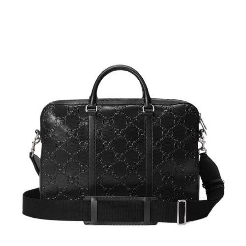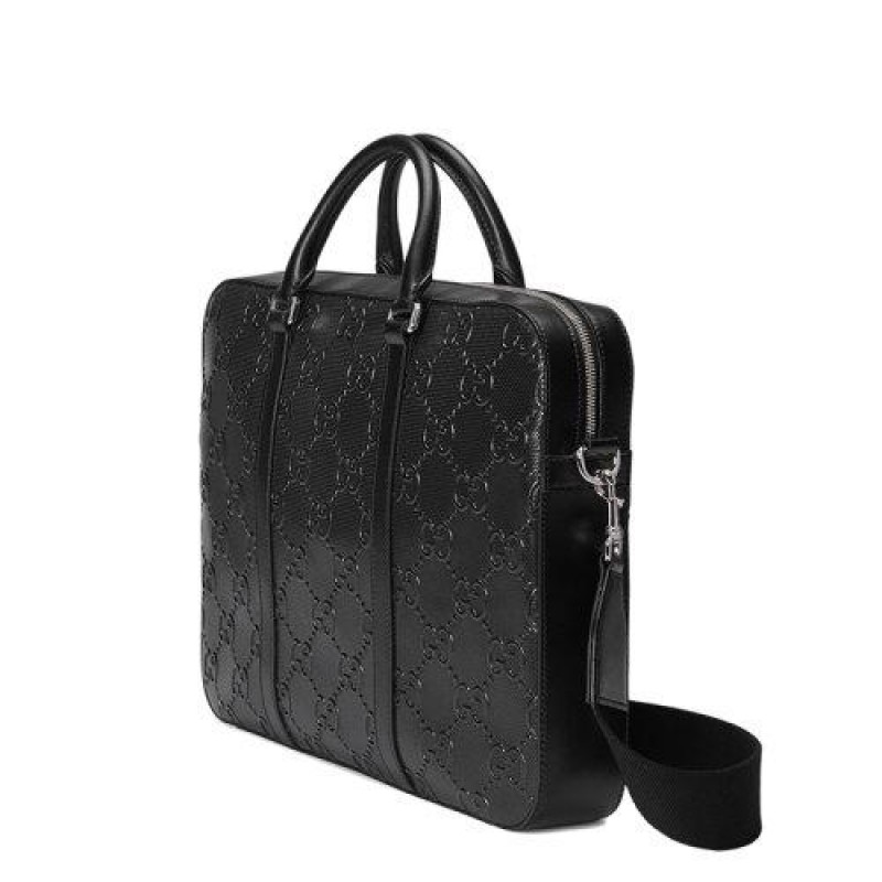 【包税】GUCCI/古驰 21新款GG embossé系列 男士黑色双G压纹皮革单肩斜挎手提公文包电脑包6585731W3CN1000