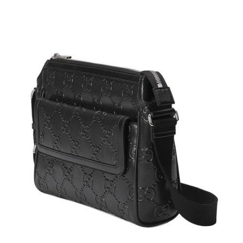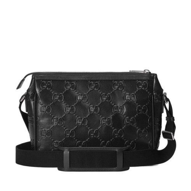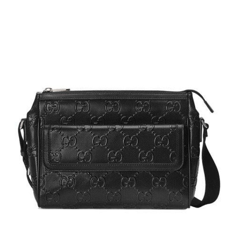 【包税】GUCCI/古驰 21新款GG embossé系列 男士黑色双G压纹皮革单肩斜挎邮差包6585651W3CN1000