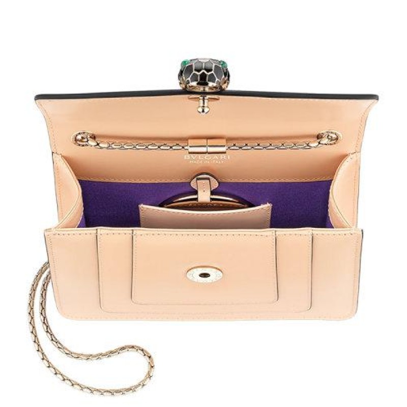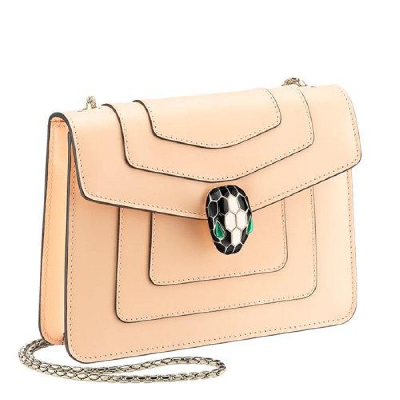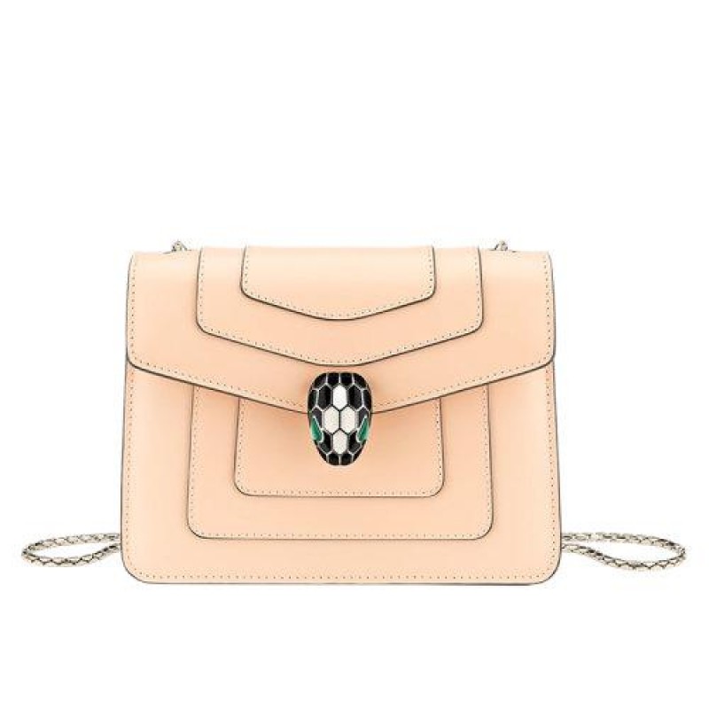 【包税】BVLGARI/宝格丽 2021春夏新款SERPENTI FOREVER系列 女士小号桃红色小牛皮金色黄铜黑色珐琅经典扣单肩斜挎包290466