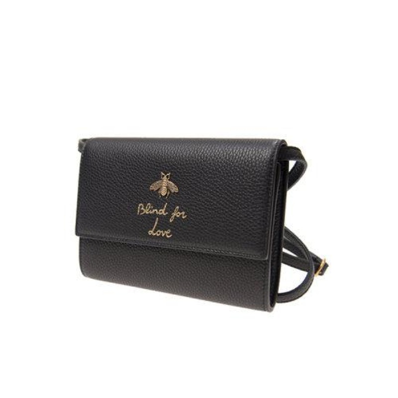 GUCCI/古驰 古琦黑色牛皮mini蜜蜂女士单肩包黑色系498097 A7M0T 1000 黑色【现货】