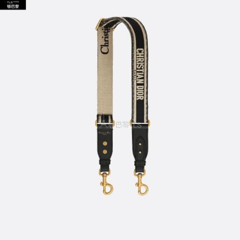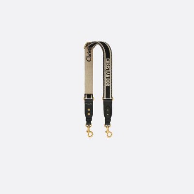 La bandouliere brodee est un accessoire unique qui permet de personnali*w*ser certains des sacs de la Maison. La signature "Christian Dior" apparait au centre de ce modele fin et reglable, tandis que les extremites sont renforcees de cuir de veau noir. Deux crochets a mousqueton en metal a finition or vieilli permettent de l'attacher*w*a votre sac prefere. Cette bandouliere noire reglable se portera a l'epaule ou crossbody pour un style tres personnel.