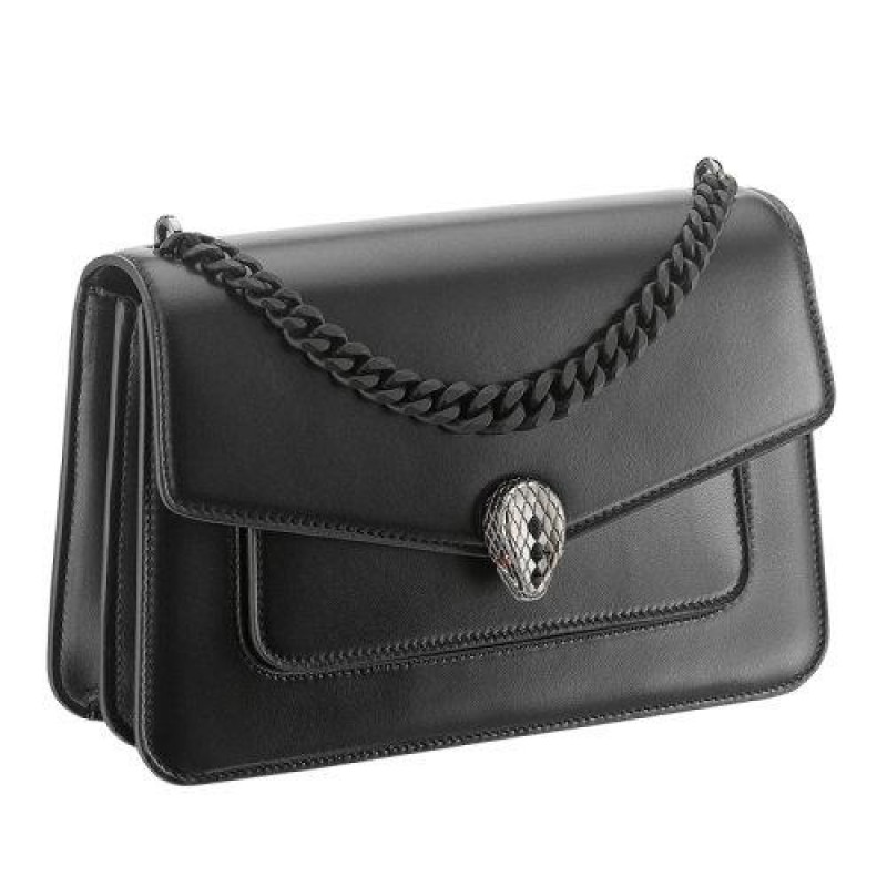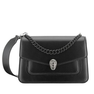 【包税】BVLGARI/宝格丽 SERPENTI FOREVER系列 女士黑色长款纳帕皮革长链单肩斜挎手提包290872