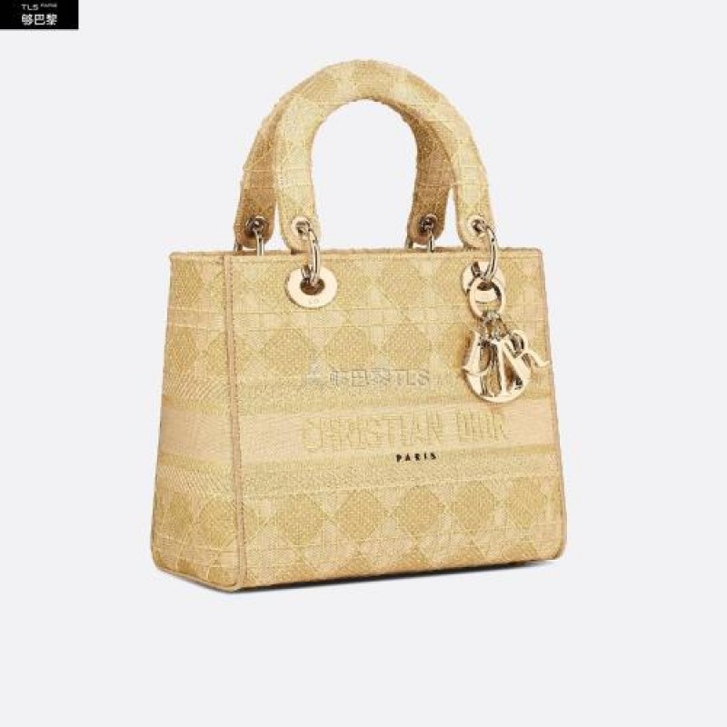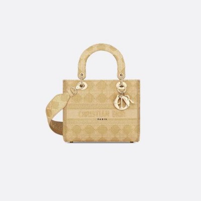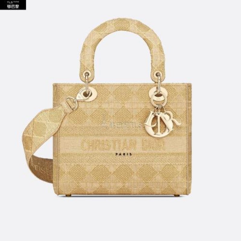 • 【包邮包税】 DIOR迪奥 21年春夏 女士 手提包 中号-lady-d-lite-手袋-铂金色金属光泽线藤 M0565ORLK_M20A 预定商品1-3周发货