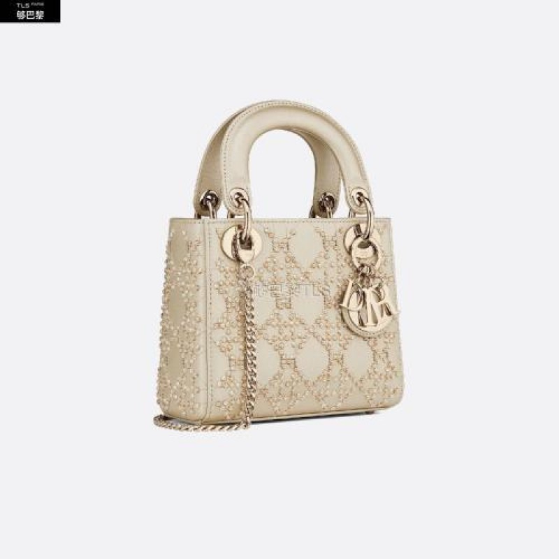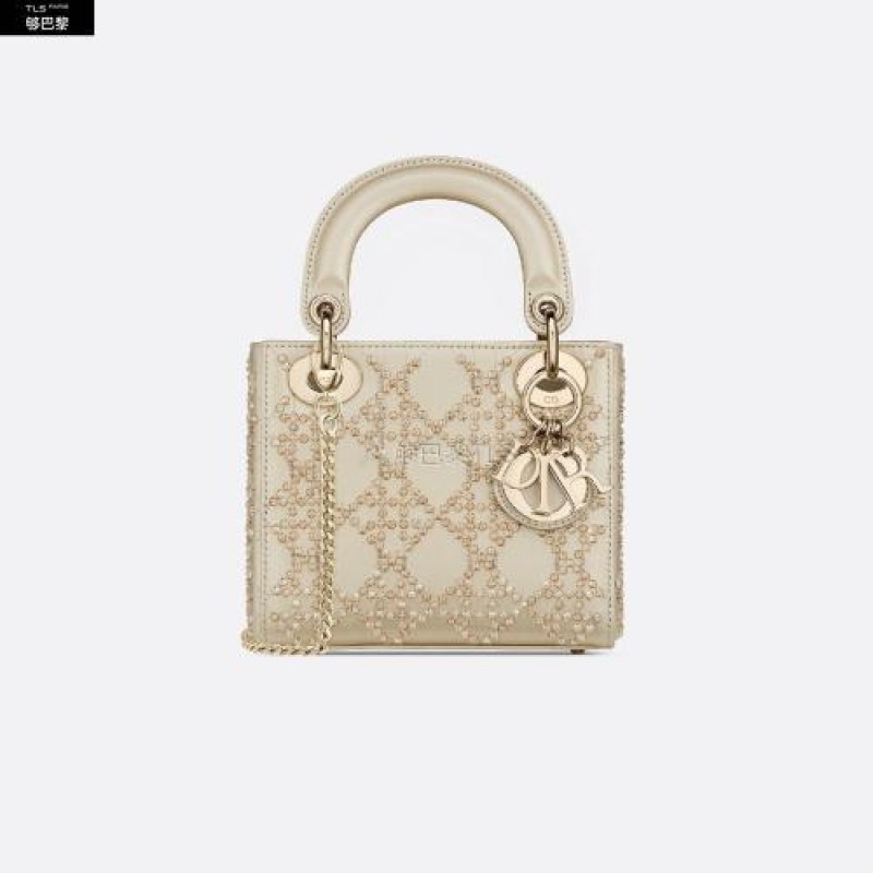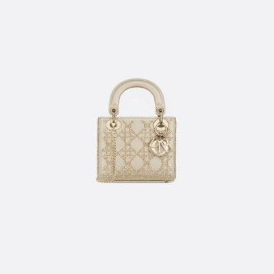 Le sac Lady Dior incarne parfaitement la vision d'elegance et de beaute de la maison Dior. Raffinee et feminine, c'est une creation intemporelle et pourtant toujours actuelle. Le cuir de veau metallise couleur platine est brode du motif Cannage en perles facettees qui capturent la lumiere. Les charms "D.I.O.R." en metal dore pale rehaussent et illuminent sa silhouette. Dote d'une bandouliere chaine amovible, ce sac Lady Dior mini sera le compagnon de soiree ideal.