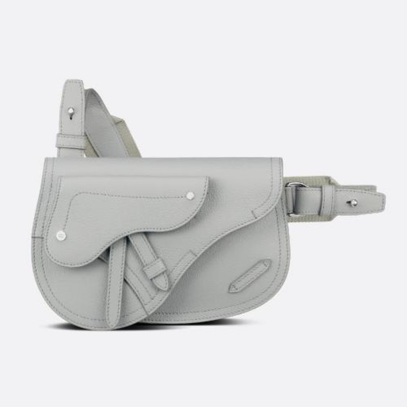 La pochette Saddle affiche un format compact aux emblematiques lignes Saddle, pour en faire le compagnon ideal au quotidien. Imagine pour contenir vos essentiels, ce modele est confectionne en cuir de veau graine gris Dior, couleur fetiche de Christian Dior. Dotee d'une bandouliere amovible et reglable ainsi que de deux passants de ceinture, cette pochette pourra etre portee a la taille, a l'epaule ou en crossbody.