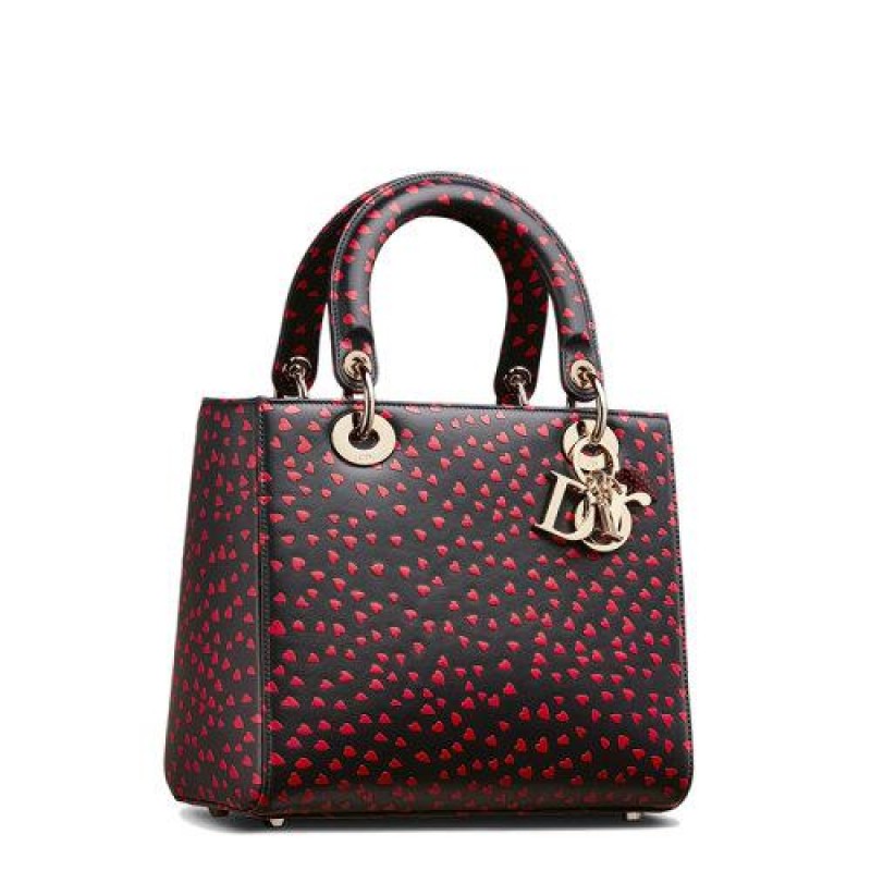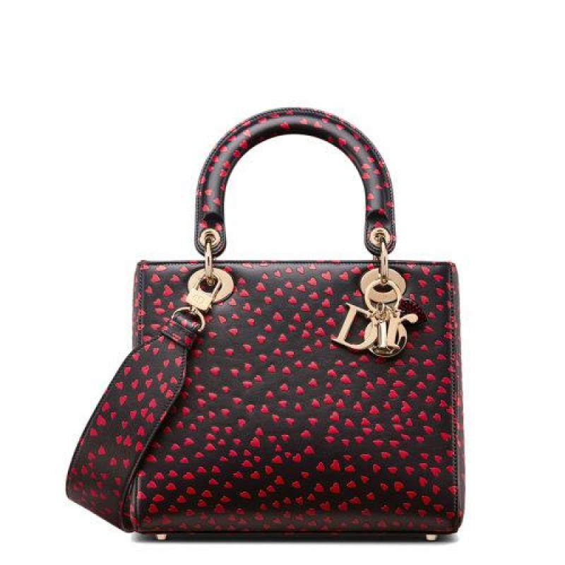 【包税】DIOR/迪奥 21秋冬新款LADY DIOR系列 女士中号I Love Paris bleu图案印花海军蓝小牛皮红色爱心装饰单肩斜挎手提戴妃包M0518OSGA_M928