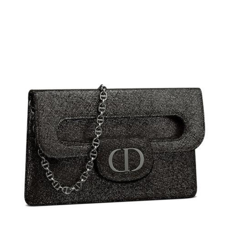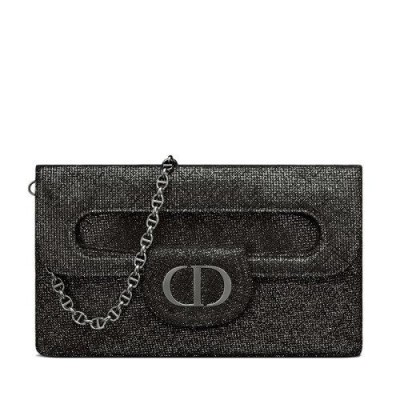 【包税】DIOR/迪奥 21秋冬新款DIORDOUBLE系列 女士中号Spatial银色金属质感小牛皮CD标志单肩斜挎手拿包M8641BMAG_M090