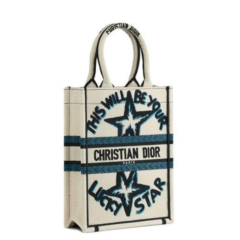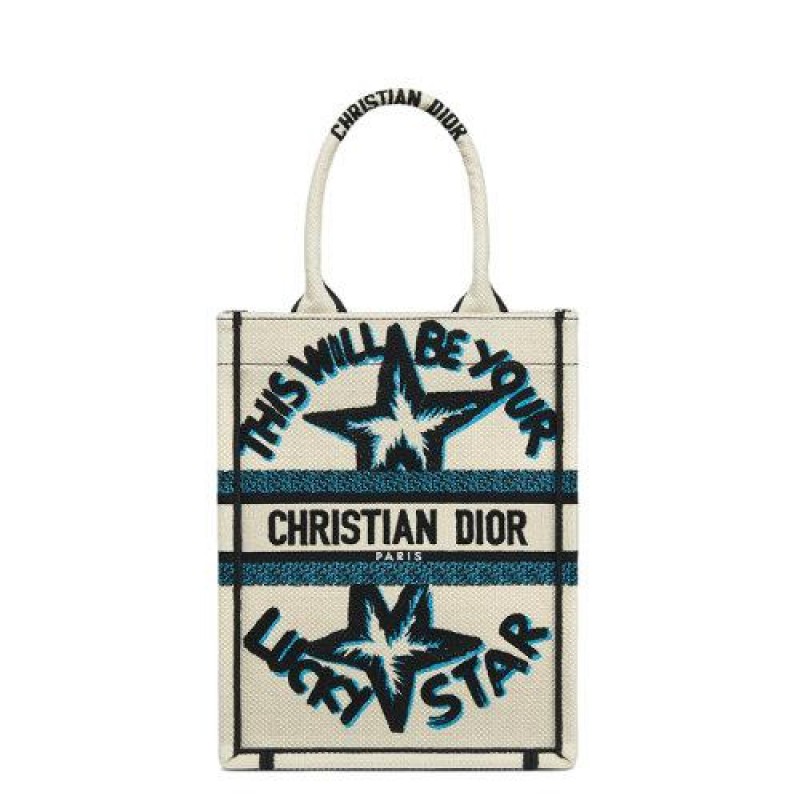 【 Tax included 】 DIOR/Dior 2021 Autumn/Winter New BOOK Series Male and Female Same Color Lucky Star Pattern Embroidered White Handheld Vertical Tote Bag M1272ZRGV_S933
