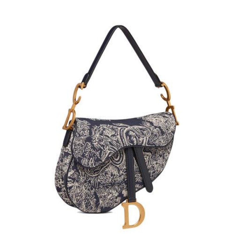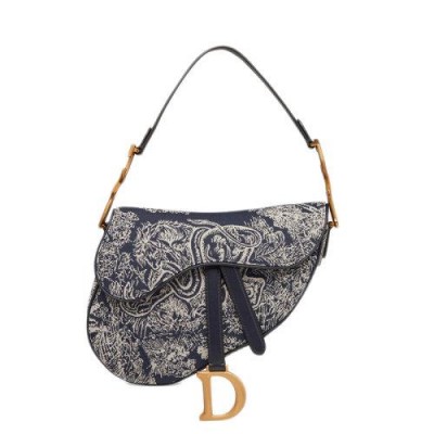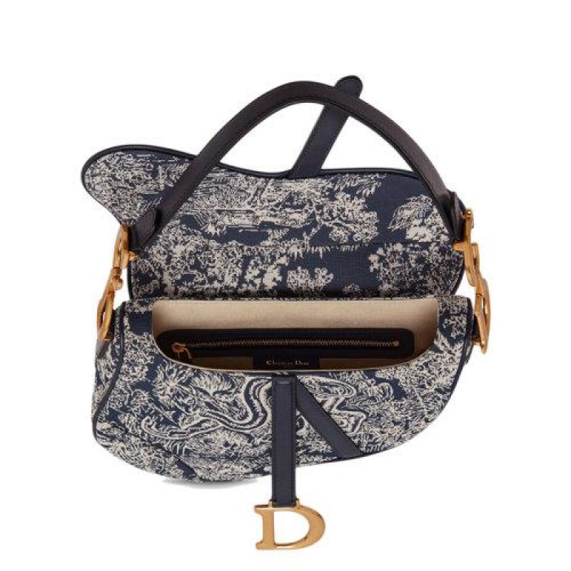 【包税】DIOR/迪奥 21秋冬新款SADDLE系列 女士蓝色Toile de Jouy图案反向提花帆布金色D形扣装饰翻盖单肩手提马鞍包M0446CTFO_M928
