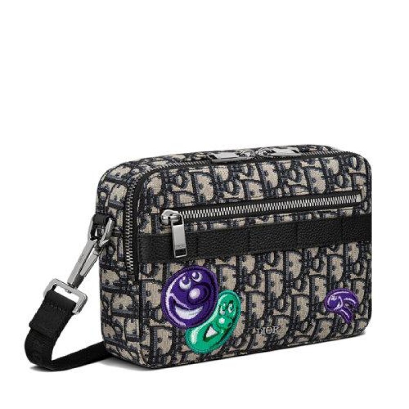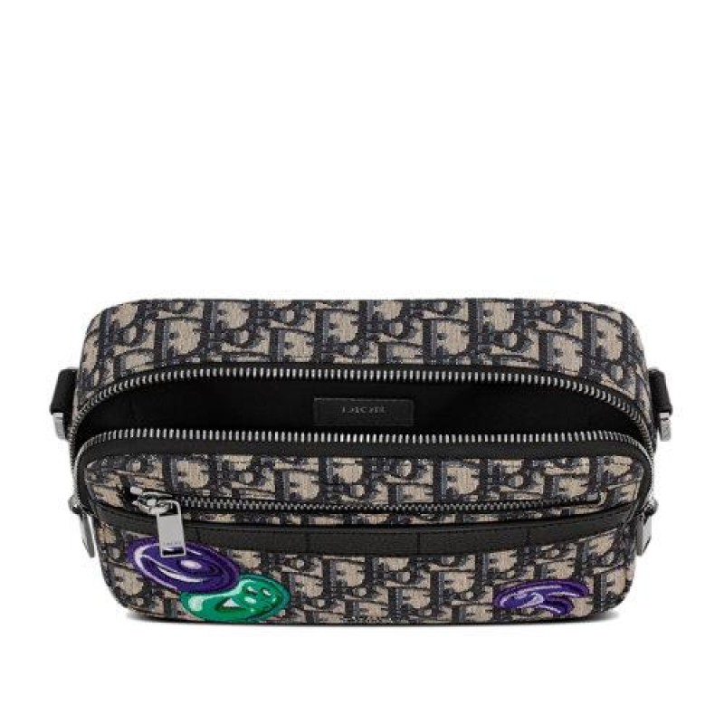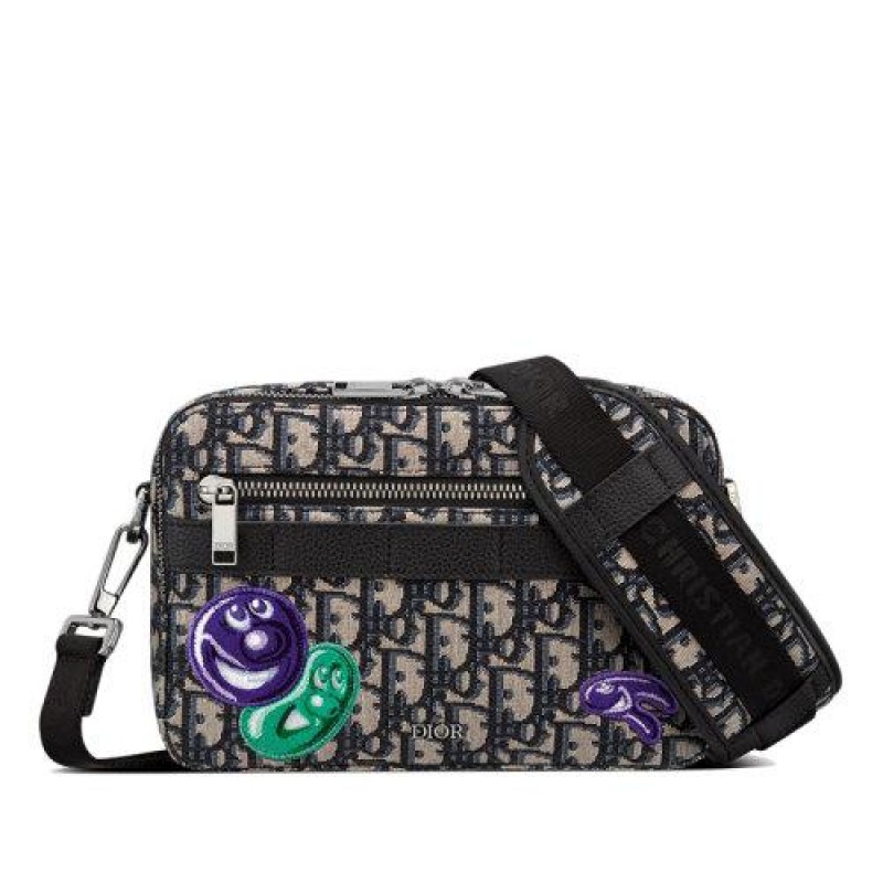 【包税】DIOR/迪奥 21秋冬新款SAFARI系列 男士米色黑色老花帆布KENNY SCHARF联名图案印花斜挎单肩包1ESPO206UAU_H10E