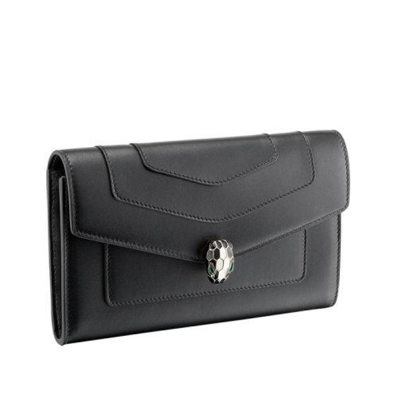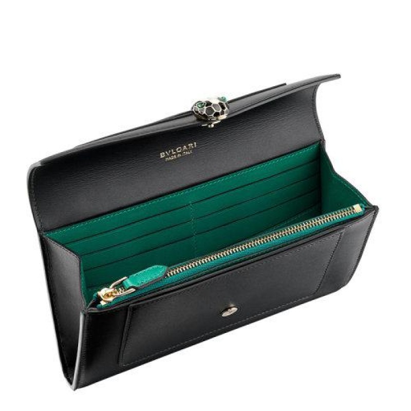 【包税】BVLGARI/宝格丽 2021春夏新款 SERPENTI FOREVER系列 女士大号黑色柔软小牛皮金色黄铜和黑色珐琅蛇头扣钱包290836
