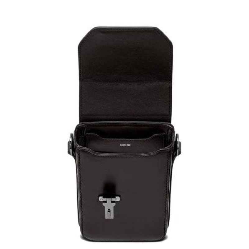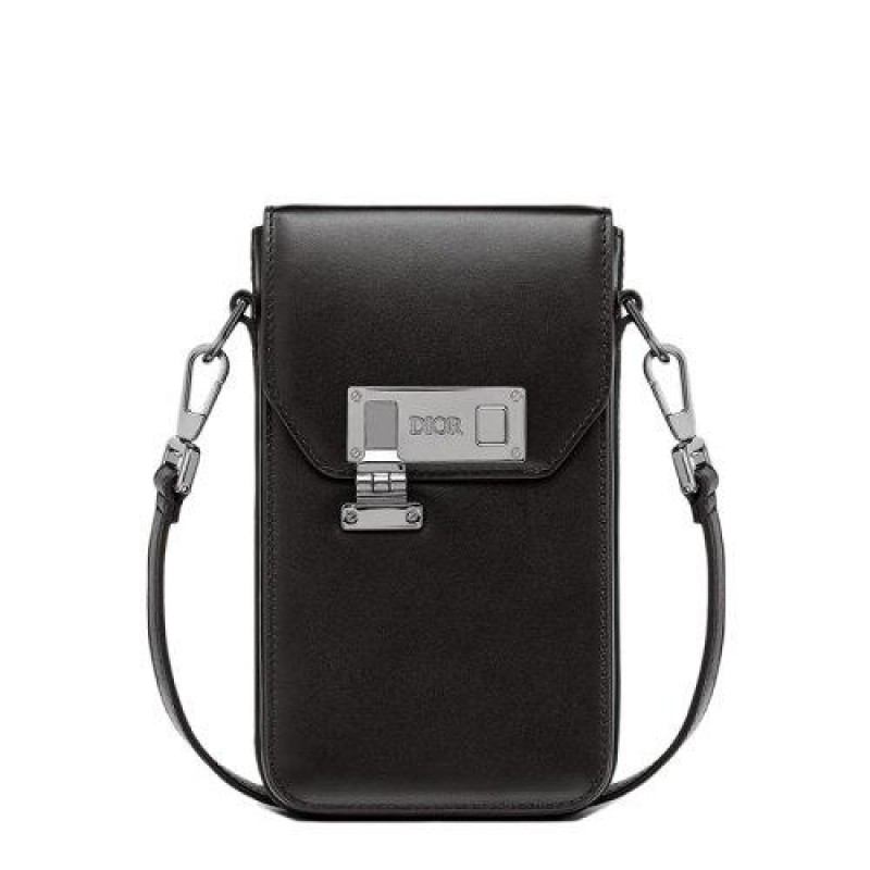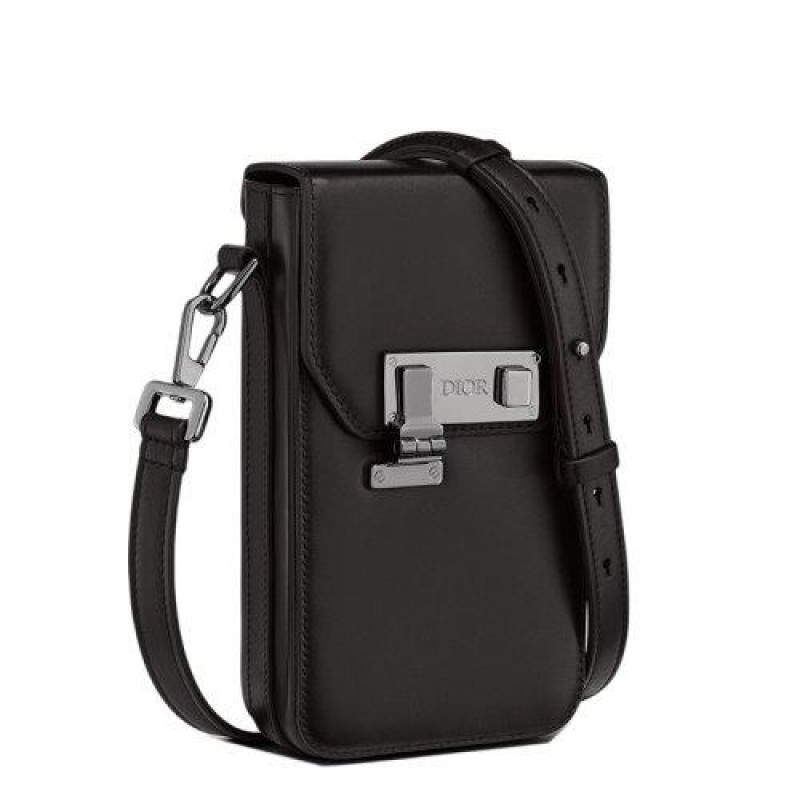 【包税】DIOR/迪奥 21秋冬新款 男士黑色光滑小牛皮银扣单肩斜挎手机包2LXCA345UCC_H03E