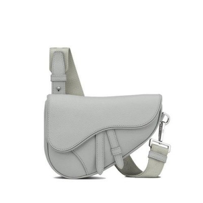 【包税】DIOR/迪奥 21春夏新款SADDLE系列 男士迷你灰色粒面小牛皮磁性翻盖拉链可调式尼龙提花肩带马鞍腰包斜挎包1ADPO191YMJ_H810