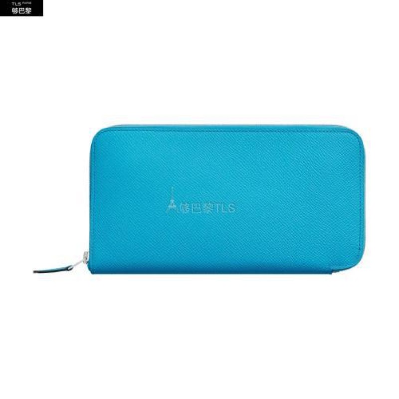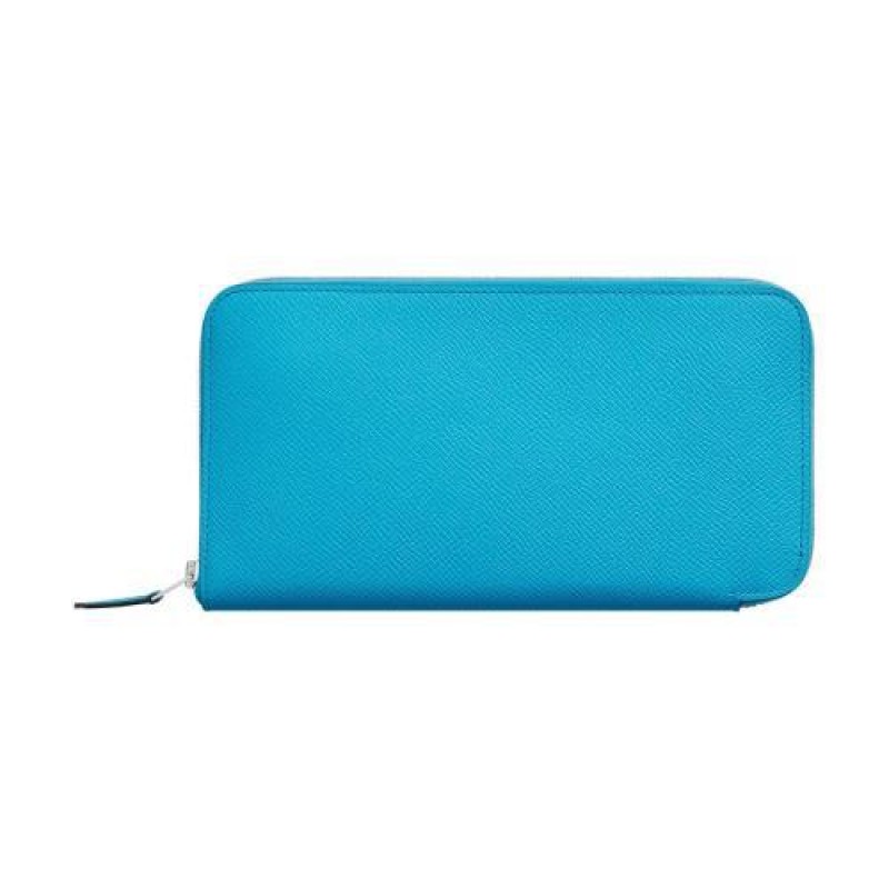 Portefeuille en veau Epsom, fermeture a glissiere argentee palladieea l'interieur : un porte-monnaie avec fermeture a glissiere et six poches cartes de credit. Peut contenir un smartphone.Fabrique en France