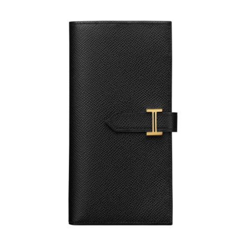 Portefeuille a soufflet en veau Epsom, ferme par une patte en cuir et un fermoir « H » plaque ora l'interieur : un porte-monnaie avec fermeture a glissiere, cinq poches cartes de credit et deux poche*esFabrique en France