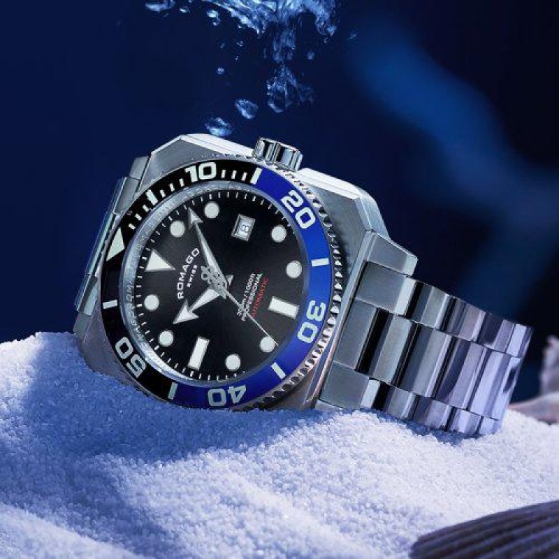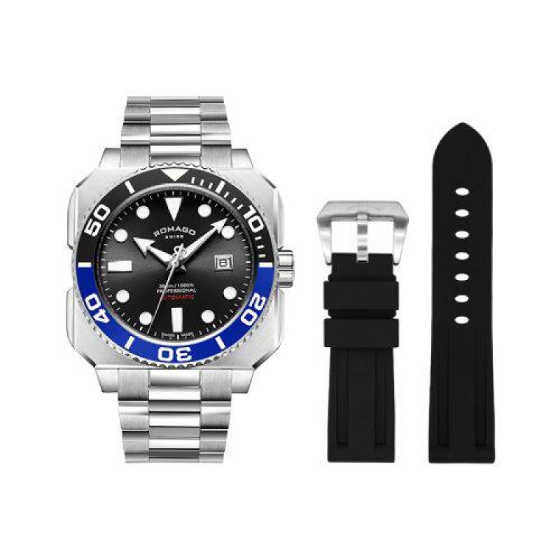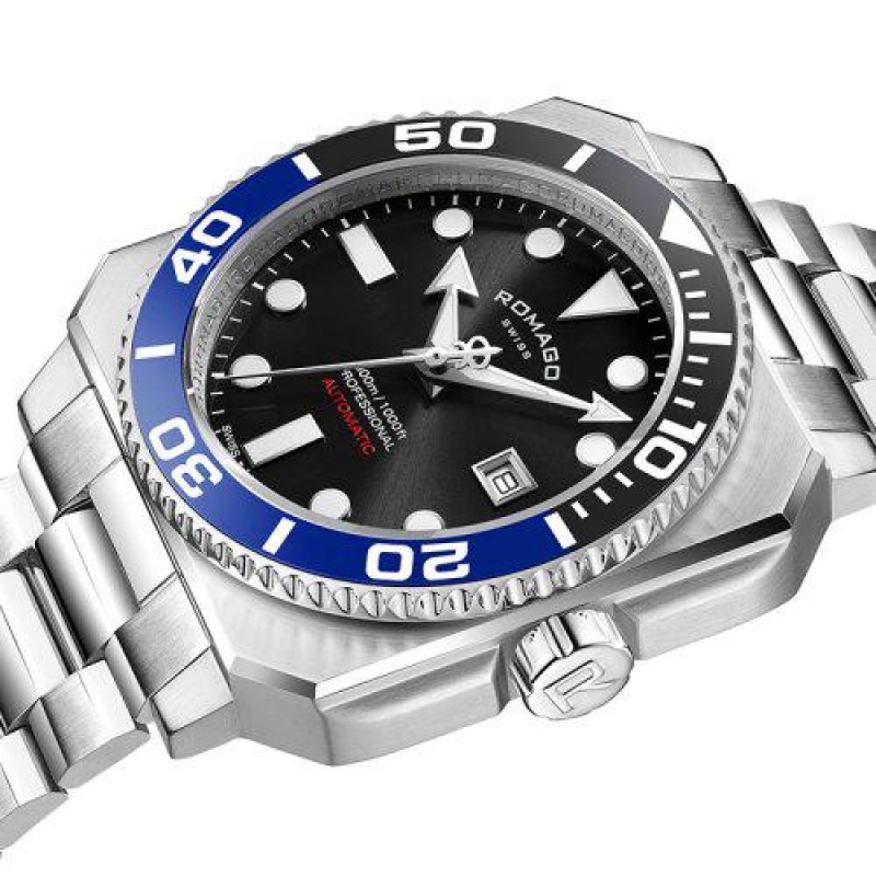 ROMAGO/雷米格 瑞士手表 深潜者300男士全自动机械经典日历款夜光防水方形钢带潜水表