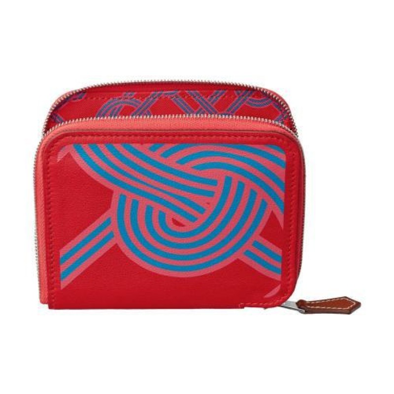 Portefeuille compact zippe en veau Swift, double en twill de soie imprime all over « Noeuds Marins » de Anne Roussel Klepper et Veronika Wildgruber, fermeture a glissiere argentee palladiee A l'interieur : un porte-monnaie zippe, six poches cartes de credit Fabrique en France