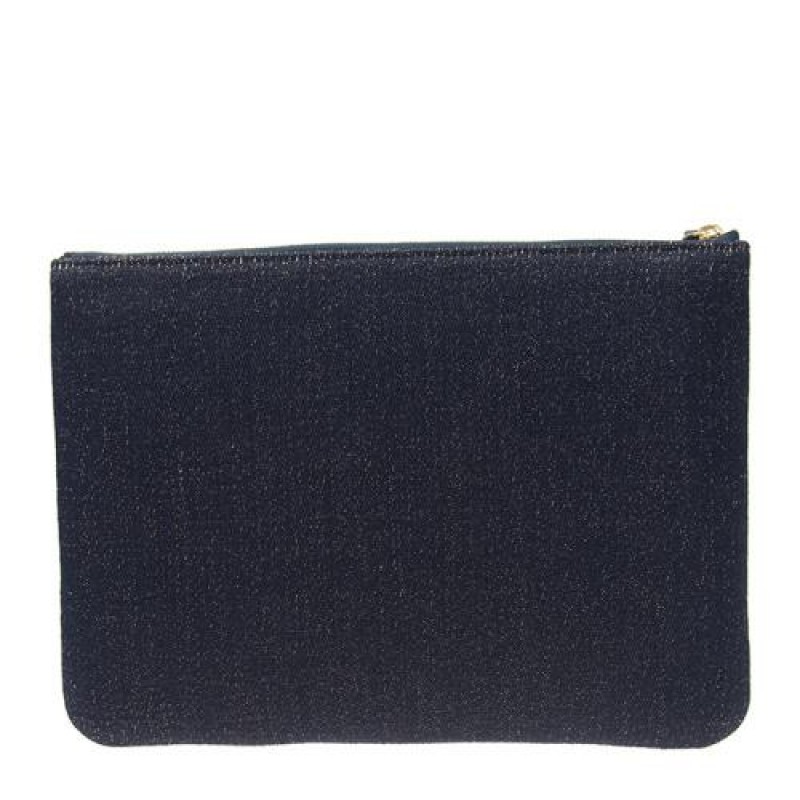 【包税】Chanel/香奈儿 女士经典logo字母蓝色帆布手拿包