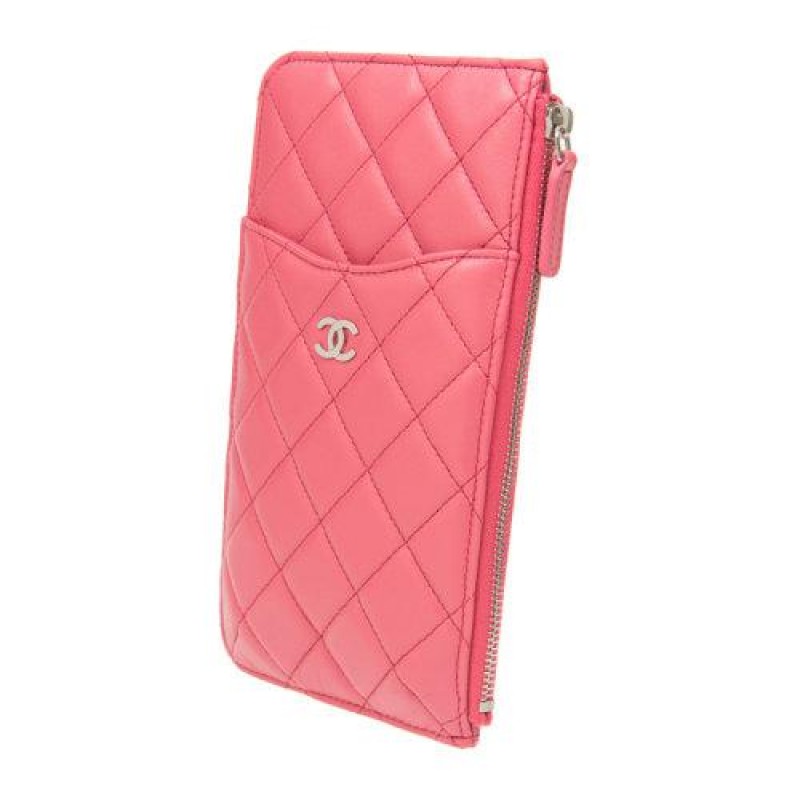 CHANEL/香奈儿  女士牛皮鱼子酱金属LOGO菱形长款拉链女士手拿包