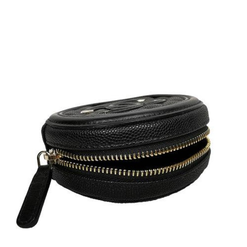 【 Tax included 】 CHANEL/Chanel Classic Black Caviar Pattern Calfskin Double C Seam Zipper Round Wallet