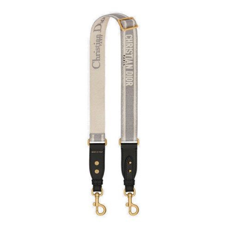 【 Tax included 】 DIOR/Dior 2021 Spring/Summer New Collection Grey Logo Embroidered Black Calfskin Adjustable Shoulder Strap S8543CBTE_S932