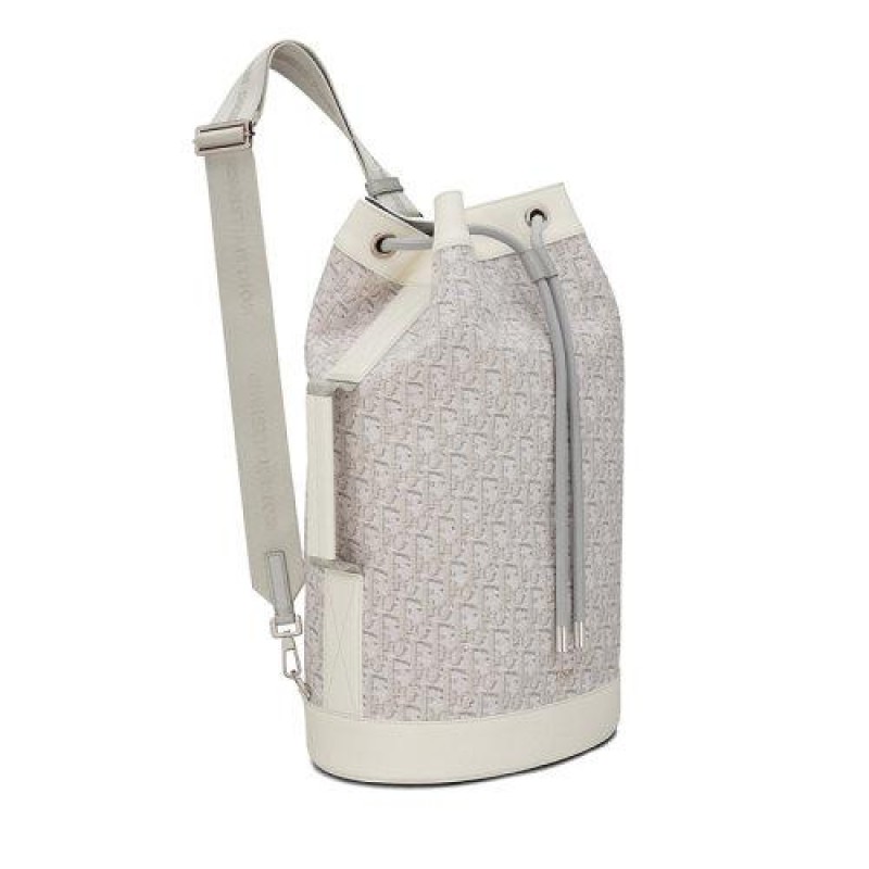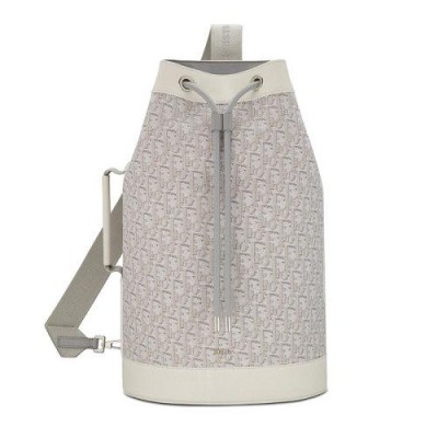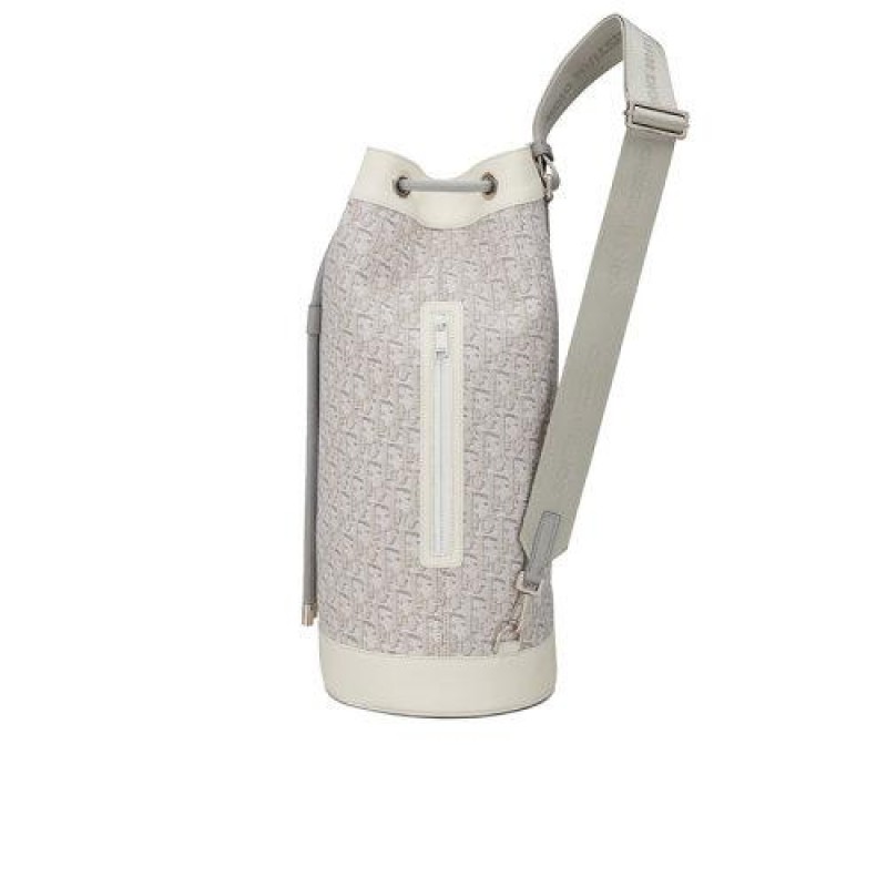 【包税】预售2-3周 DIOR/迪奥 21春夏新款 男士灰白色斜纹提花帆布米白色粒面小牛皮抽绳封口手提斜挎单肩水桶包1ESBO021YIE_H07E