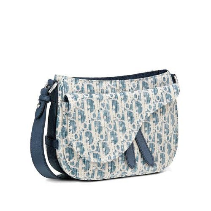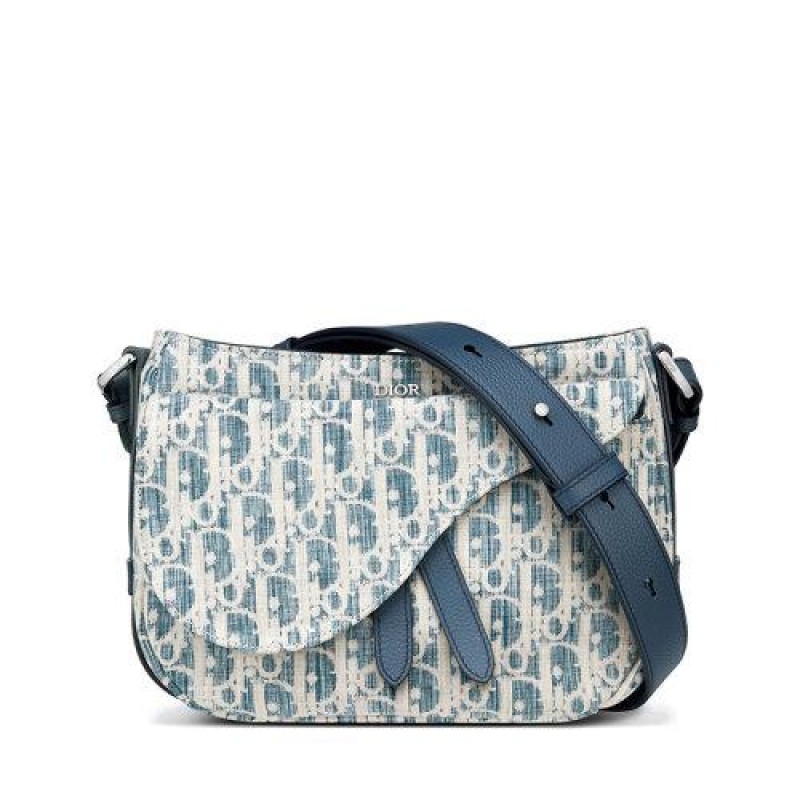 【包税】DIOR/迪奥 2021春夏新款 SADDLE SOFT系列 男士迷你蓝色斜纹Kasuri提花帆布拉链开合可拆卸手柄单肩斜挎手提包1ADHO024UTK_H00E