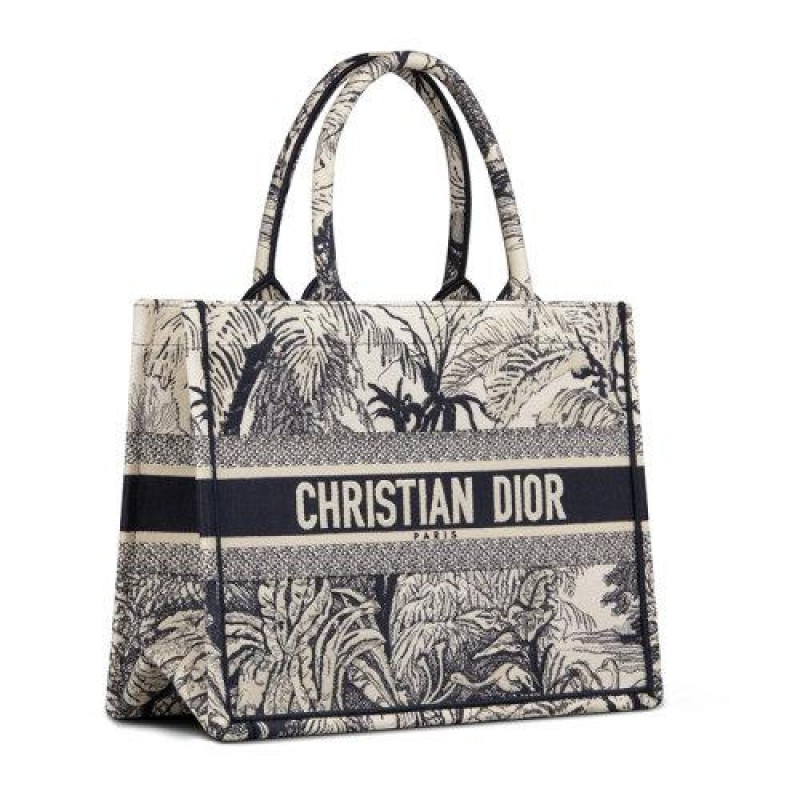 【 Tax included 】 DIOR/Dior 2021 Spring/Summer New Dior Book Tote Series Blue Toile de Jouy Pattern Technical Fabric Palms Theme Christian Dior Signature Single Shoulder Handbag M1296ZRFU_S928