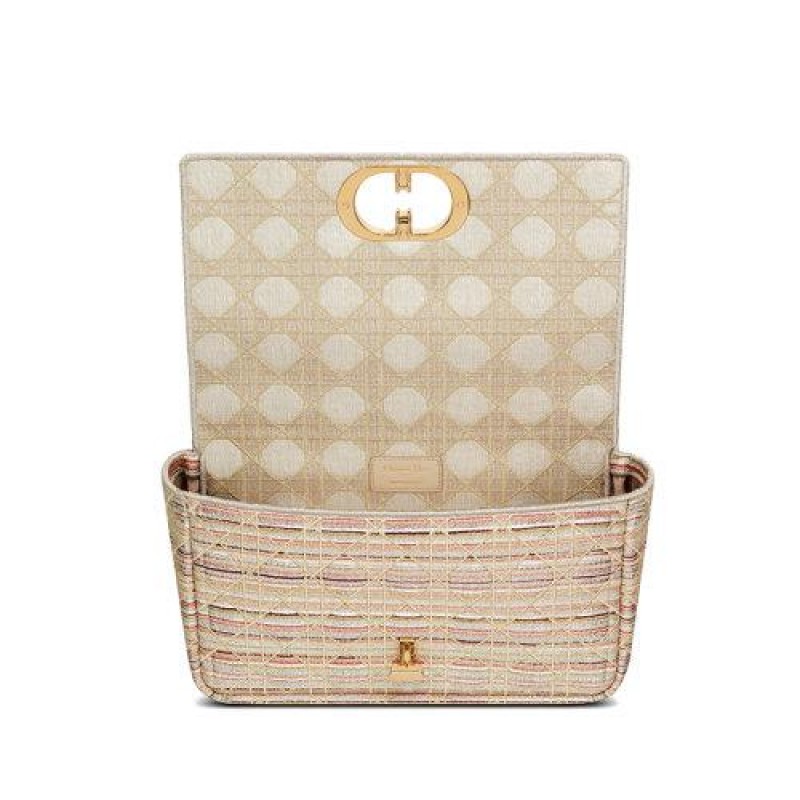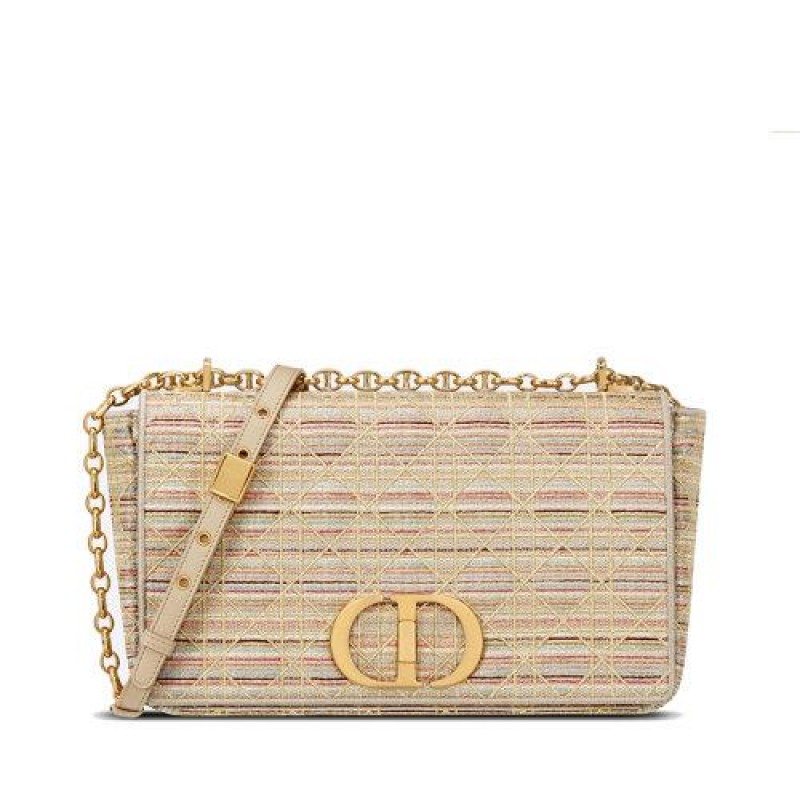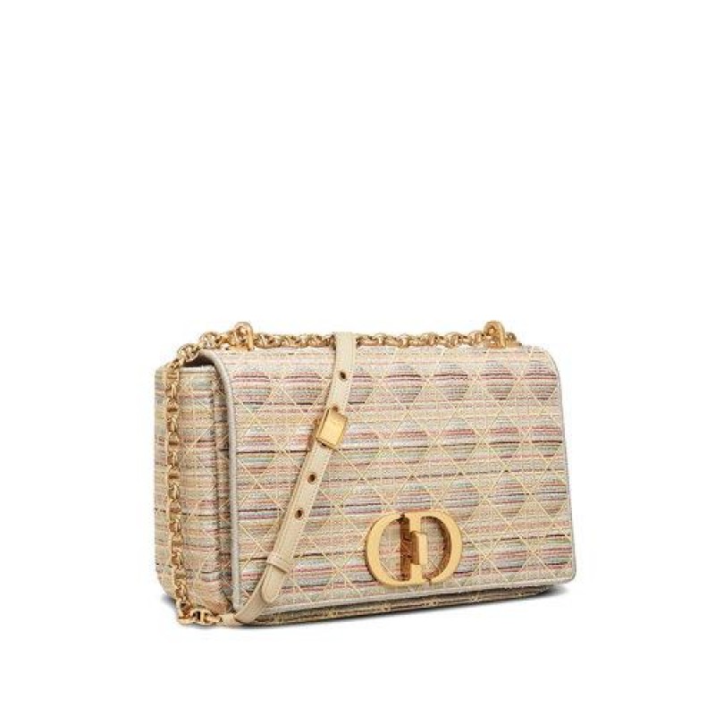 【包税】DIOR/迪奥 2021春夏新款 CARO系列 女士大号五彩条纹刺绣CD扭扣的翻盖可拆卸链带单肩手提斜挎包M9243URFY_M885 $5142.9 |