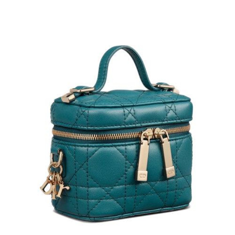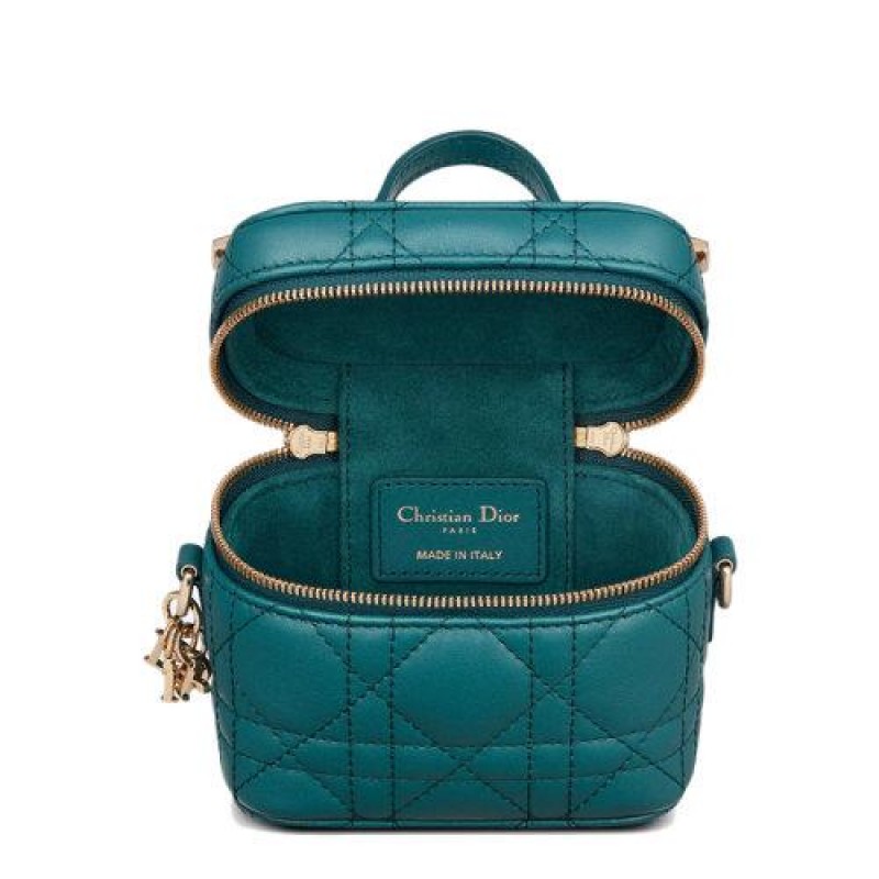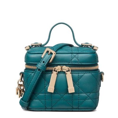 【包税】DIOR/迪奥 21春夏新款MICRO VANITY LADY DIOR系列 女士海蓝色菱纹小羊皮斜挎手提化妆包S0918ONMJ_M97B