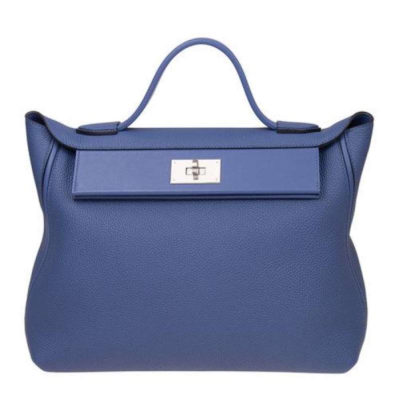 HERMES/爱马仕 女士蓝色牛皮金属银扣手拎包手提包手包女包 242435CMAATG