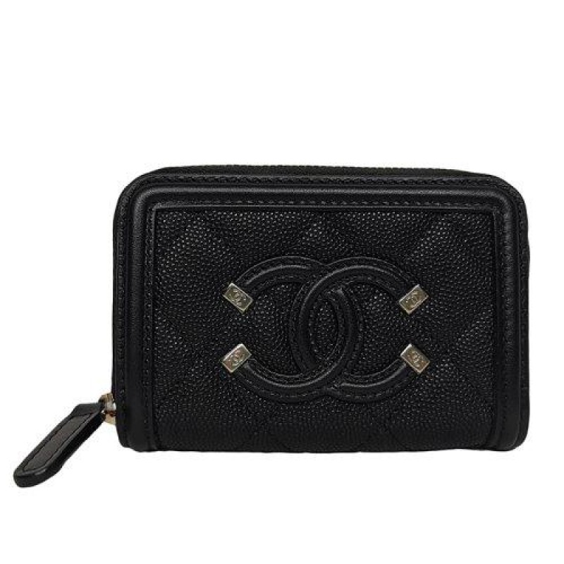 【 Package tax 】 CHANEL/Chanel Classic Black Caviar Pattern Calfskin Double C Zipper Short Wallet