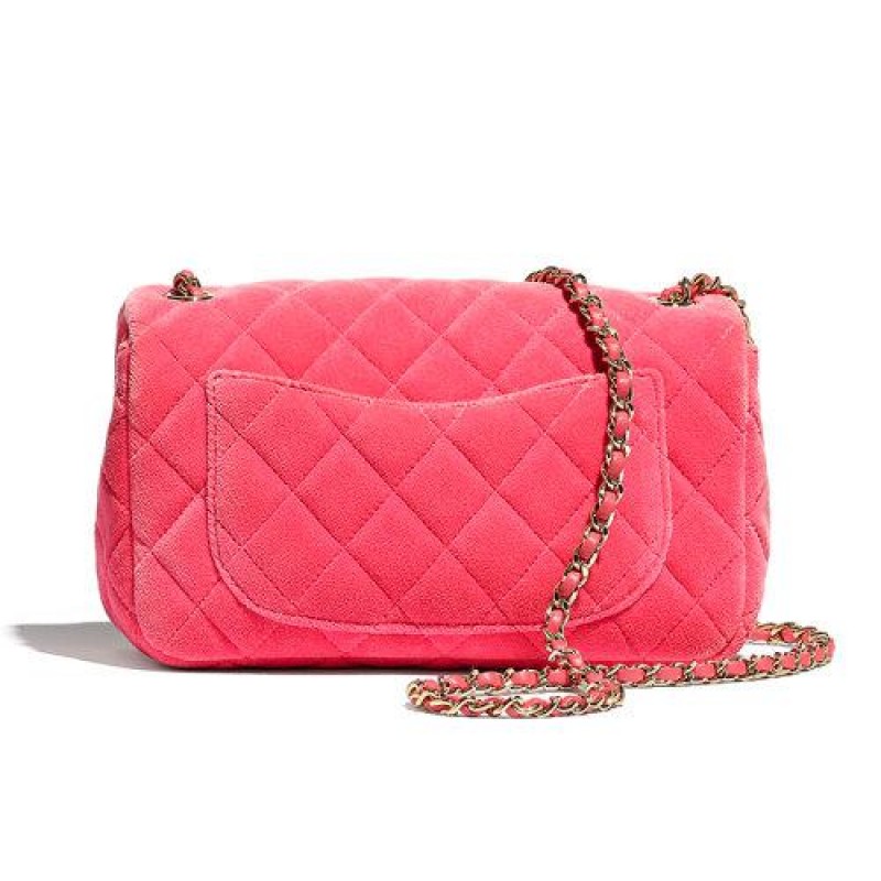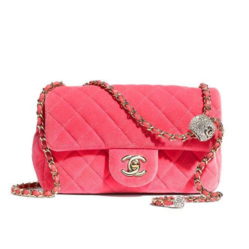 [Package Tax] CHANEL/Chanel 2020 Autumn Top New Pink Velvet Adjustable Gold Chain Adorned Crystal Ball Double C Cross Shoulder Bag