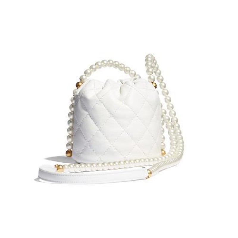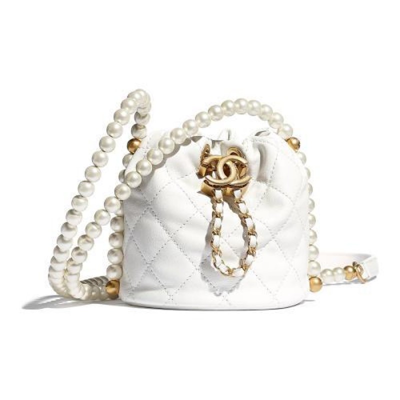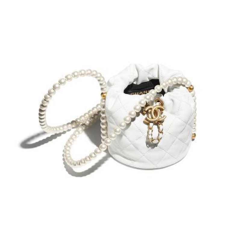 【 Pre sale 】 CHANEL/Chanel white calf leather pearl and gold alloy MINI with drawstring bucket bag shoulder bag AS2529 B05543 10601