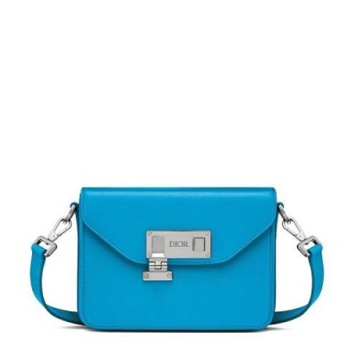 【包税】DIOR/迪奥 2021秋冬新款 男士浅蓝色光滑小牛皮翻盖dior徽标单肩手提斜挎包1LXPO214UCL_H510