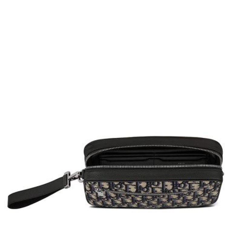 【包税】DIOR/迪奥 2021秋冬新款 男士米色/黑色斜纹提花帆布dior徽标手拿包2ESCA340YSE_H05E