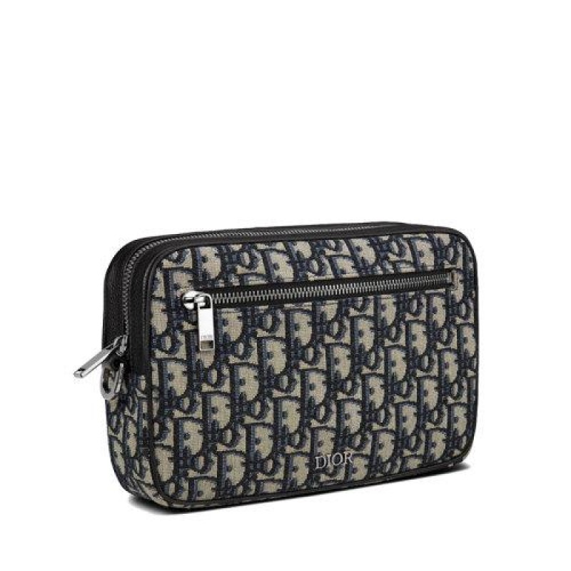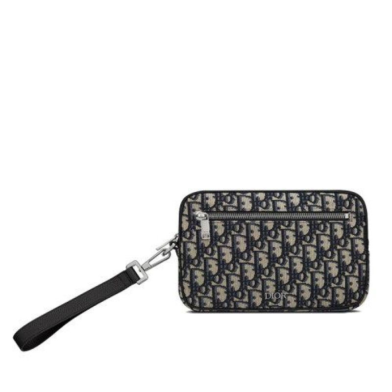 【包税】DIOR/迪奥 2021秋冬新款 男士米色/黑色斜纹提花帆布dior徽标手拿包2ESCA340YSE_H05E $1851.1 |