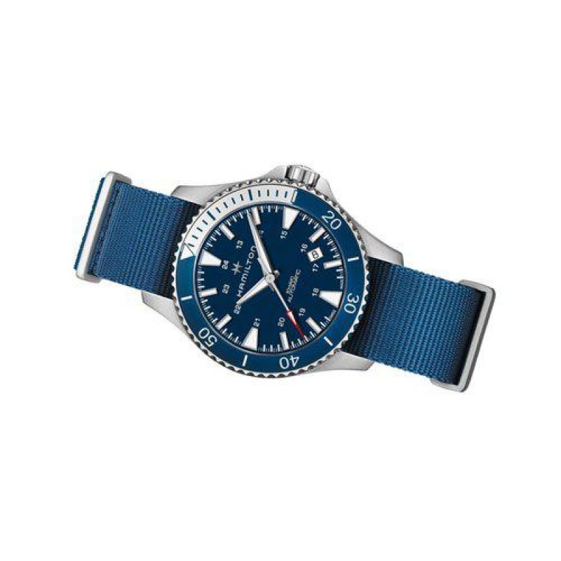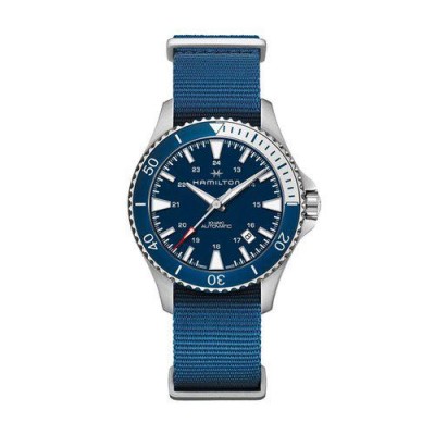Hamilton/汉米尔顿瑞士手表 卡其海军Below Zero系列 19年新款 自动机械潜水男表 蓝盘帆布带 H82345941
