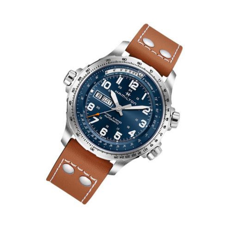 Hamilton/汉米尔顿瑞士手表 卡其航空系列自动机械男表 蓝盘浅棕色皮带 H77765541