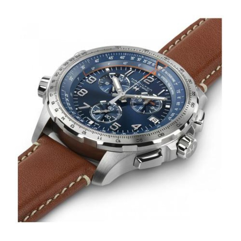 Hamilton/汉米尔顿瑞士手表 卡其航空系列石英男表 46mm蓝盘皮带 H77922541