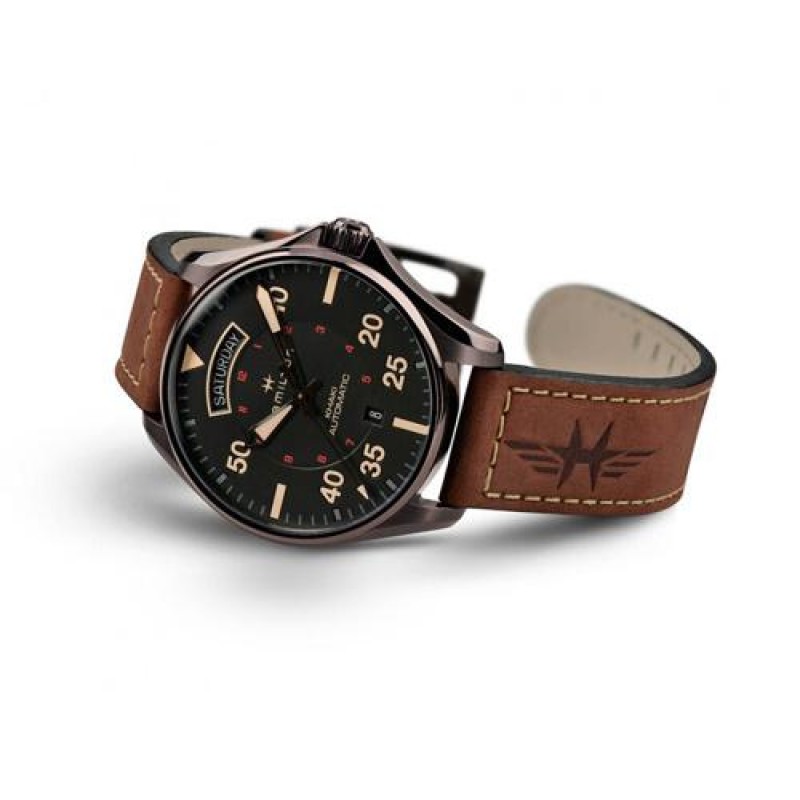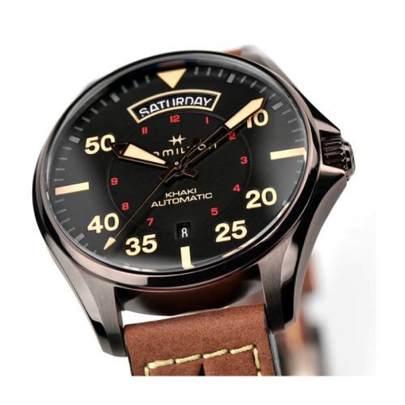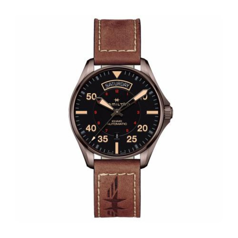 Hamilton/汉米尔顿瑞士手表 卡其航空飞行员系列星际穿越同款自动机械男表 H64605531 黑盘深棕色皮带 42mm $904.4 |