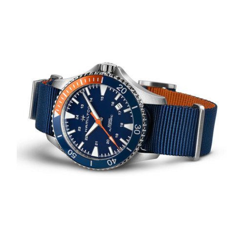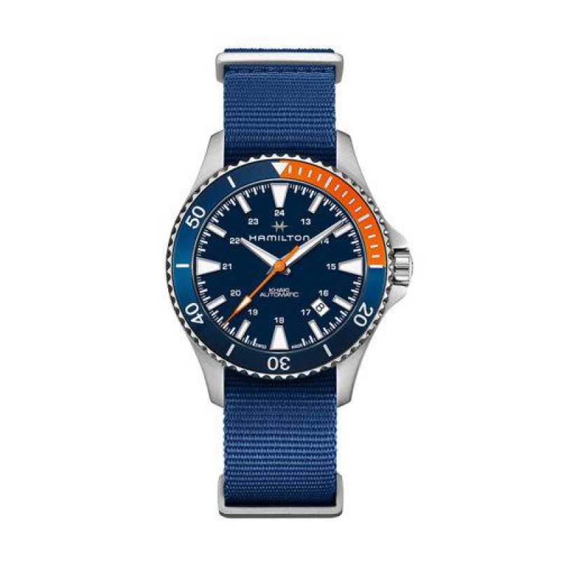 Hamilton/汉米尔顿瑞士手表 卡其海军Below Zero 自动机械 潜水男表 40mm海蓝色盘帆布袋 H82365941