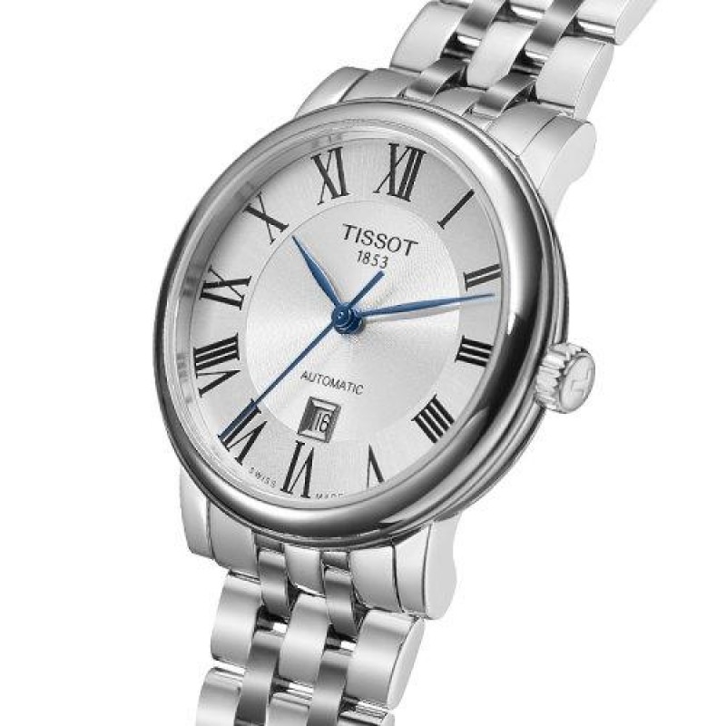TISSOT/天梭瑞士手表 卡森臻我系列自动机械女士腕表 钢带银盘T122.207.11.033.00