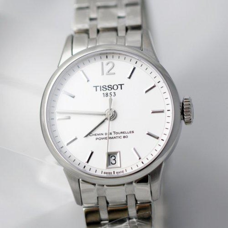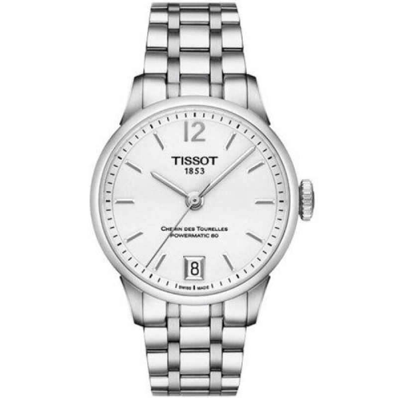 TISSOT/天梭瑞士手表 杜鲁尔系列日历带钻自动机械女士腕表 钢带银盘T099.207.11.037.00